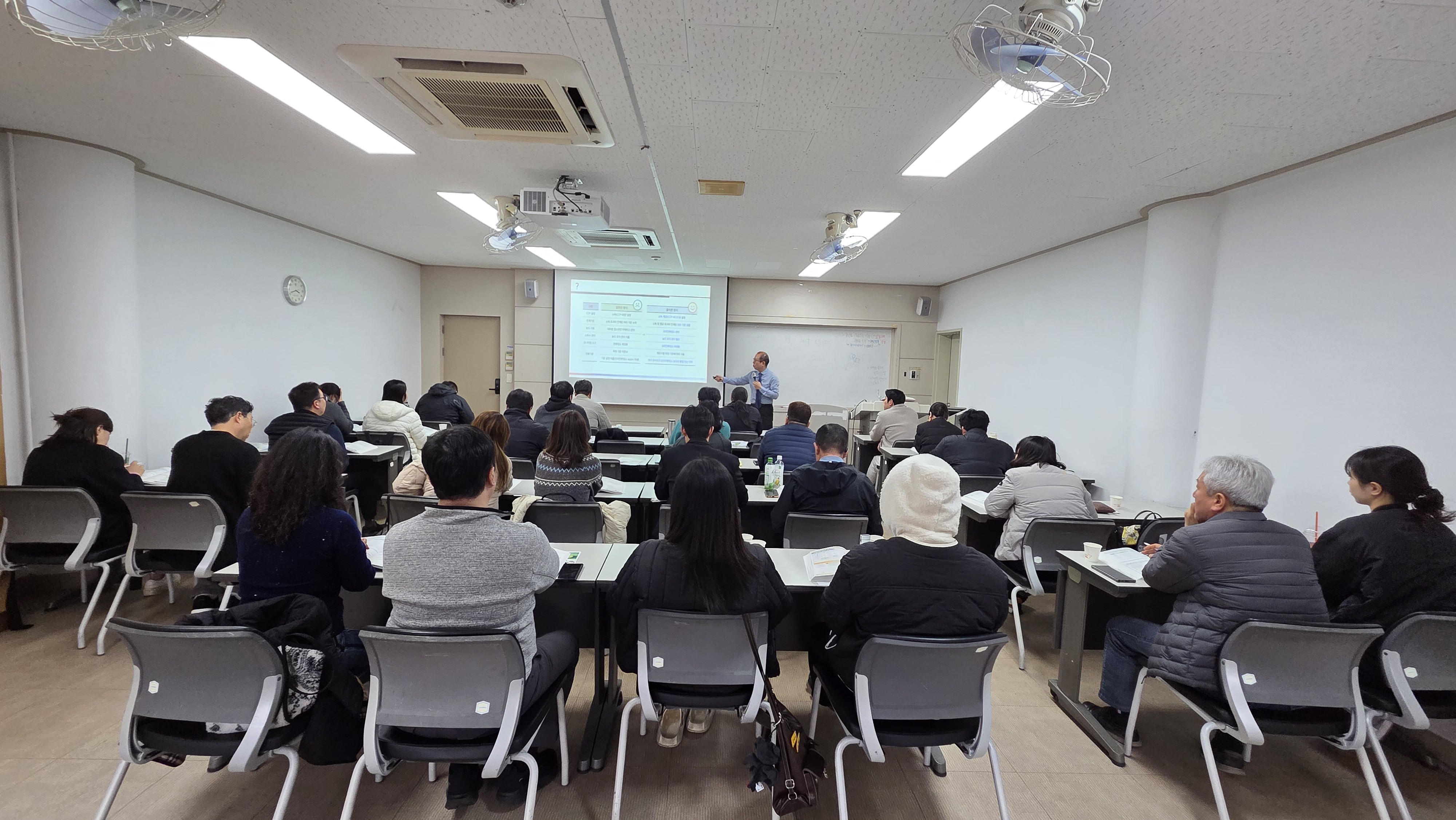 교재 및 유인물의 수준은 적절했습니까? 4.70점내용을 이해하기 쉽게 잘 설명했습니까? 4.59점교육내용은 충분히 이해하셨습니까? 4.22점교육내용이 실전적용에 유용하다고 생각하십니까? 4.63점본 과정에 대해 만족하십니까? 4.59점교육업무 처리에 대해 만족하십니까? 4.63점본 교육원의 차후 교육이 있다면 들으실 의향이 있습니까? 4.48점본 교유원의 교육을 다른 사람에게 추천하겠습니까? 4.44점교육 평가 : 5점 척도 기준 표기 (5점: 우수), (3점 : 보통), (1점 : 부족)
